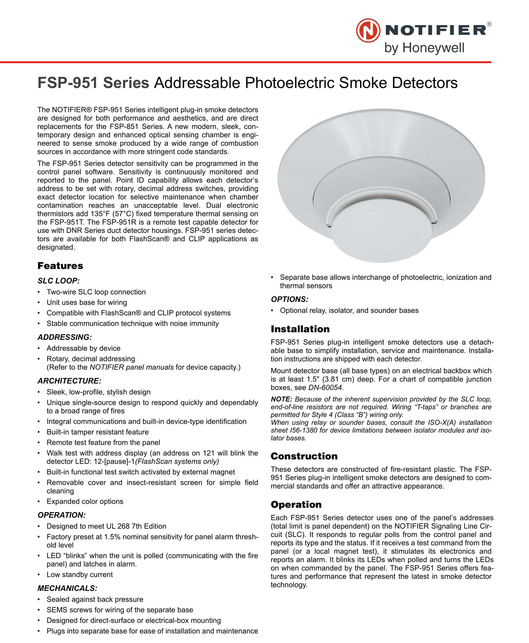 FSP-951 Series Addressable Photoelectric Smoke Detectors
