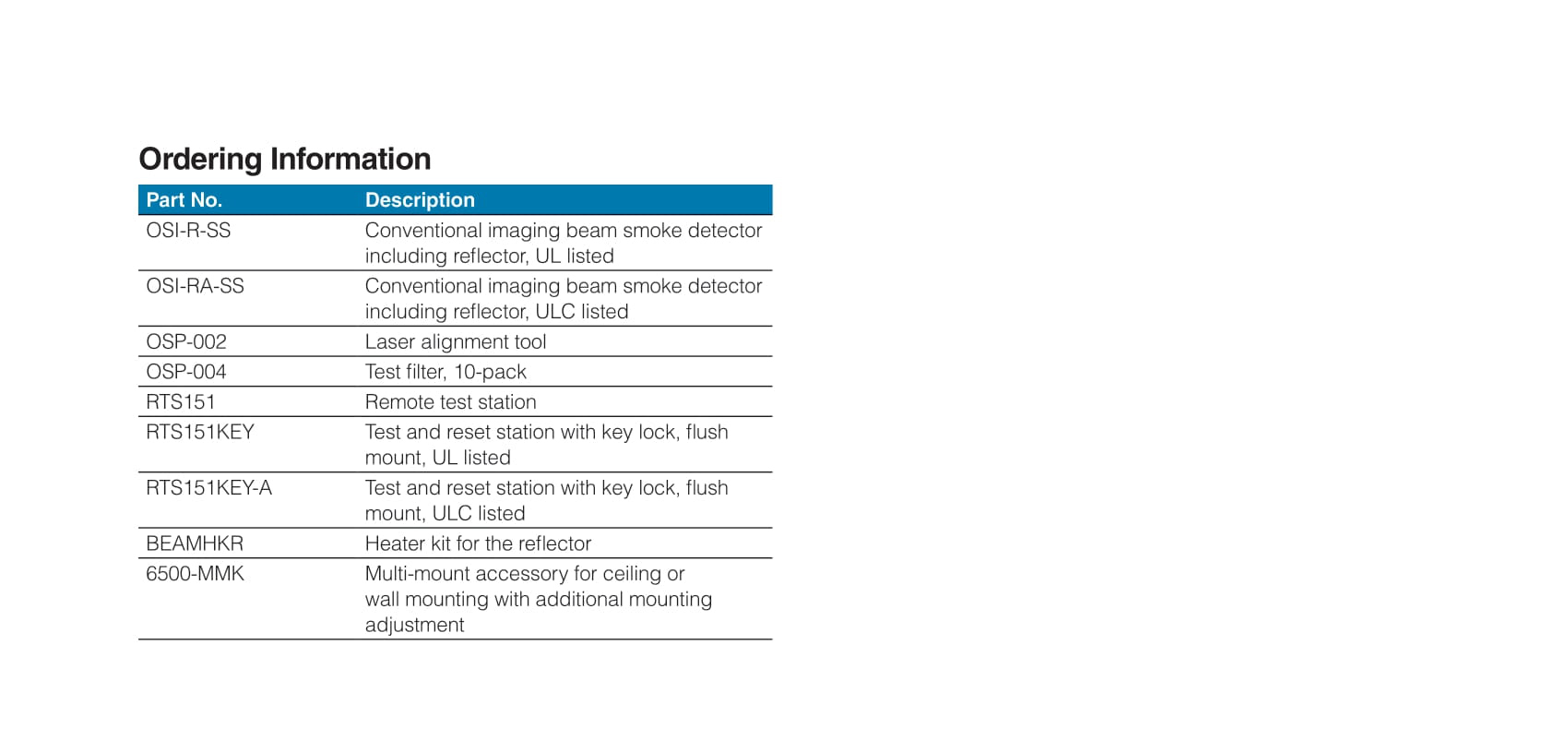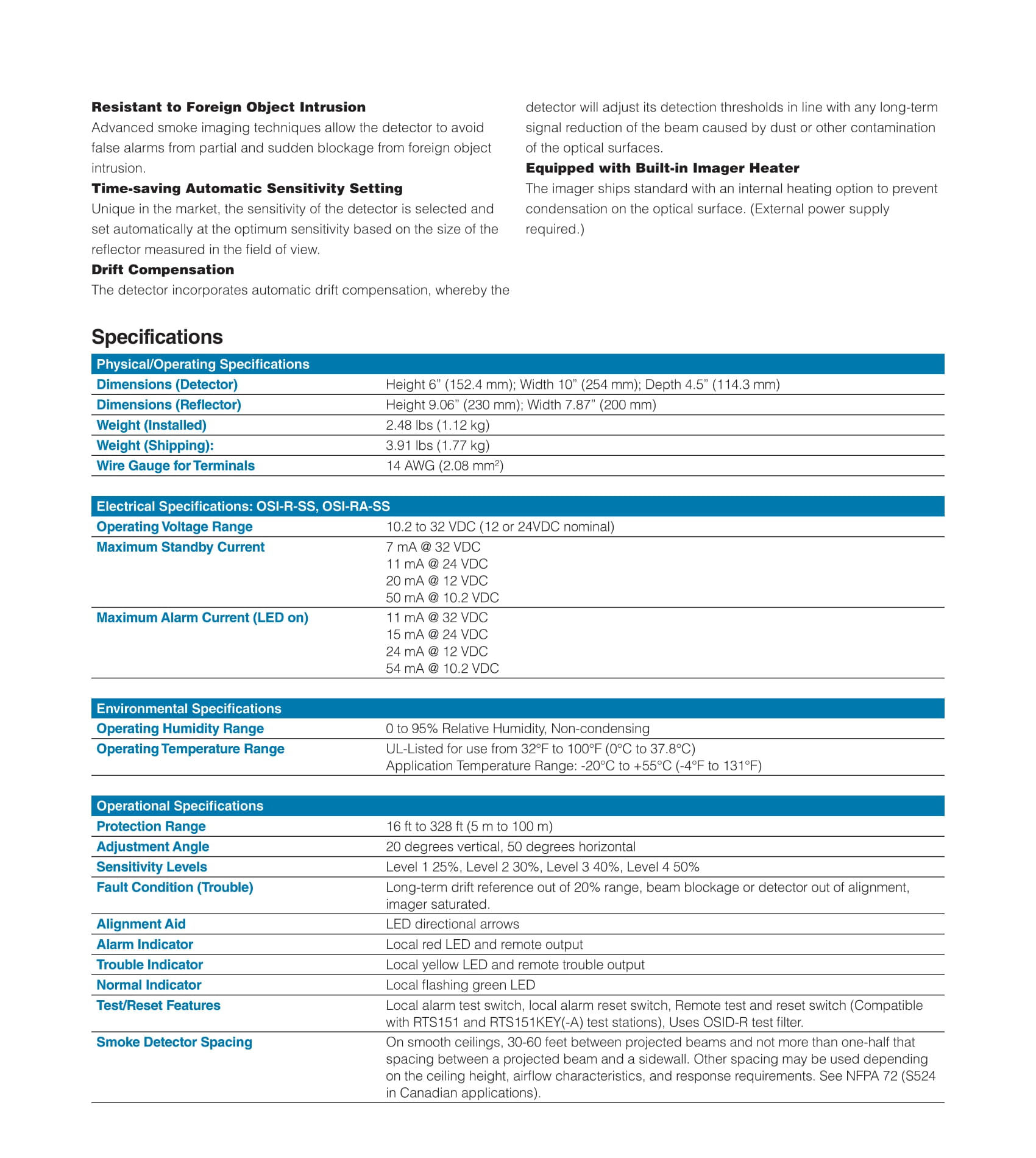 OSI-R-SS, OSI-RA-SS Conventional Reflective Imaging Beam Smoke Detector